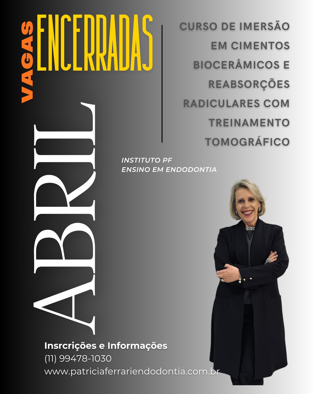 Participei dos cursos de Imersão em Tecnologias Endodonticas, Cimentos Bioceramicos e Reabsorções Radiculares da Profa. Patricia Ferrari, alguns dos melhores cursos de Endodontia de que participei!